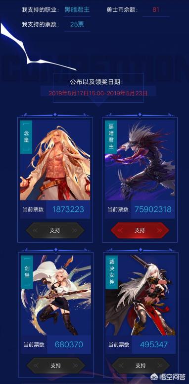 投票奖励是这样的,1票等于5个勇士币,如果公布结果赢了奖励是原来的双倍也就是10个勇士币,这次我随大流投注鬼泣,毕竟是鬼泣是幻神完美职业,无论是技能形态续航爆发都非常完美而且还有25%爆伤的加成,一个队伍怎么说也得有一个鬼泣存在,这波投注我敢说绝对是稳了。