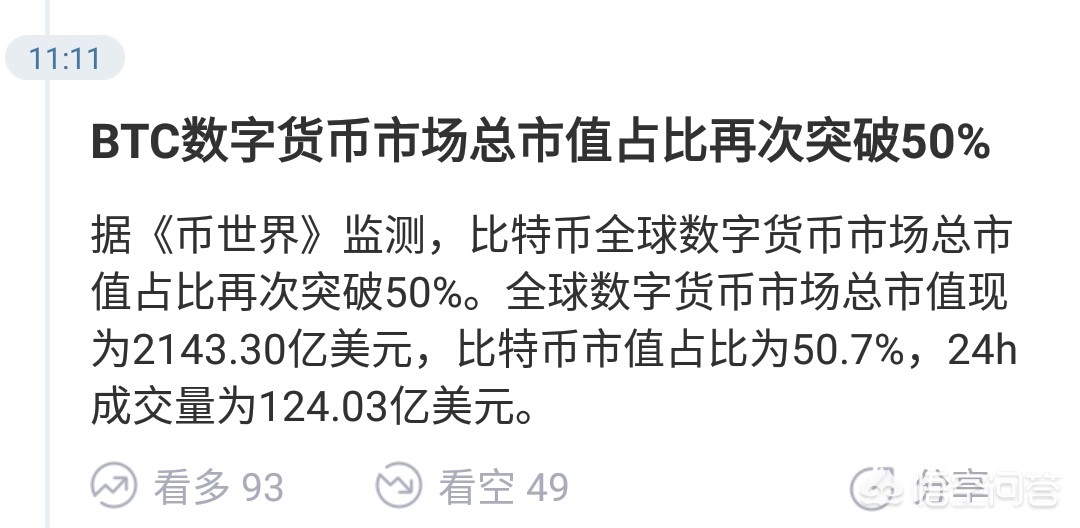 这两天有一个数据统计全球整个数字货币市场的总市值已经缩减到2200亿美元左右,而比特币的占比达到了历史最高峰54%。这也就意味着一个比特币的总市值就占据了整个数字货币市场总市值的半壁江山。