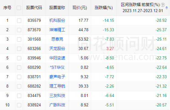 个股周涨、跌幅榜:北交所“冷静”了?
