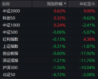 主要指数表现:中证2000本周领涨,年内表现也最好