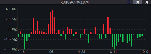 值得一提的是,从周度表现来看,近期北向资金每周累计净卖出额呈明显下降趋势。